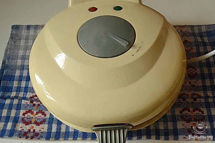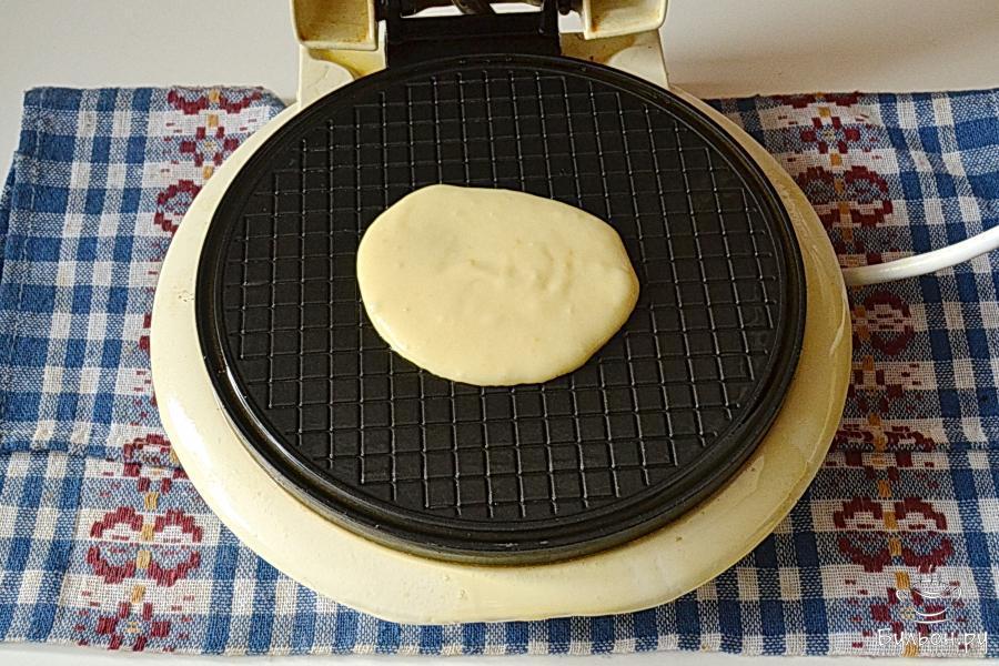 5. Накрыть вафельницу. Тесто равномерно распределится и начнется процесс жарки. В этот момент, возможно, вы увидите клубы пара, который будет выходить изнутри.