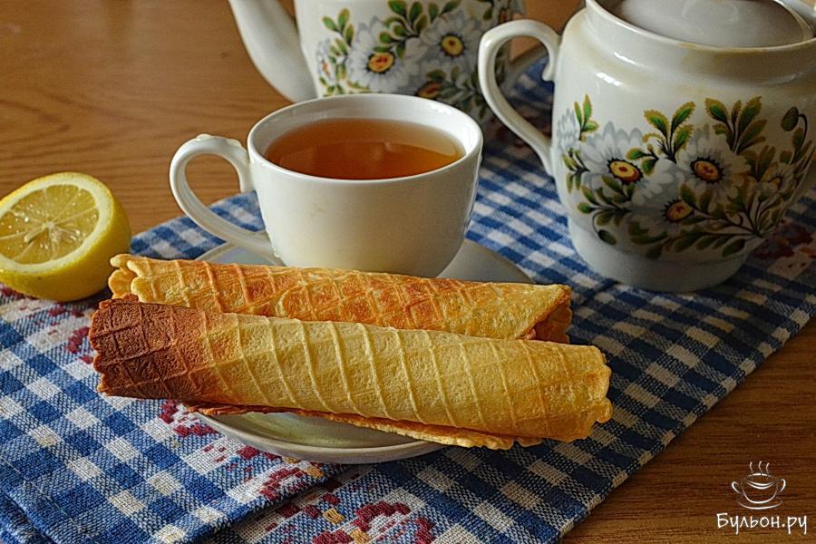8. Таким образом жарим все вафельки, пока не закончится тесто. Хрустящие вафельки хороши с чаем или кофе, при желании их можно наполнить какой-либо начинкой.
