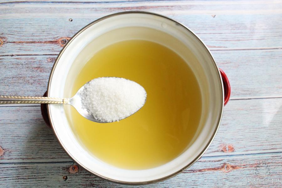 5. В сироп добавим сахар и снова ставим варенье на огонь. Варим варенье 15-20 минут. Можно варить дольше, варенье станет гуще.
