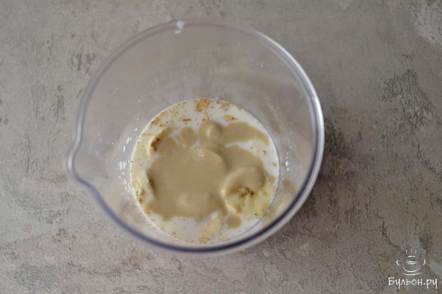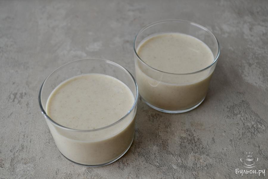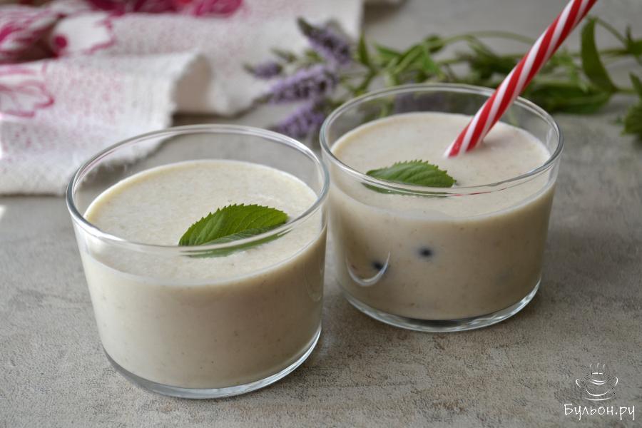 Если вам по вкусу кунжутная паста тахина, попробуйте приготовить очень вкусный, питательный смузи из, залитых горячим молоком, овсяных хлопьев, спелого банана, тахины и ароматной корицы. Кунжутная паста будет хорошо чувствоваться во вкусе напитка. Коктейль получается довольно густой, сытный за счет овсяных хлопьев и банана. В готовый смузи по желанию положите свежие ягоды. Этот напиток получается, как полноценный перекус.