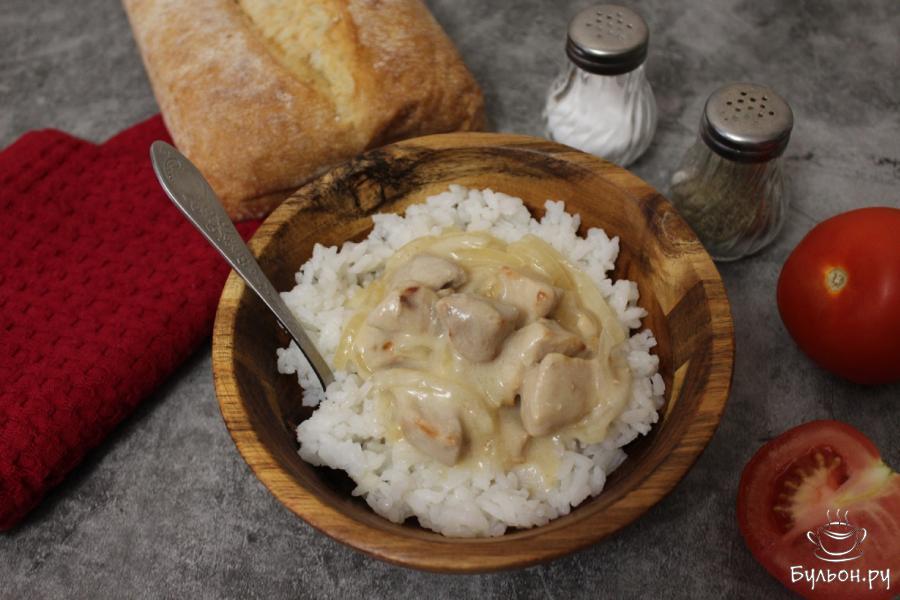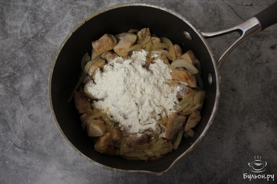 6. Благодаря добавлению муки, сметанный соус загустеет. Для более нежных кусочков мяса, можно потушить еще 10-20 минут.