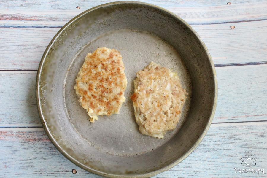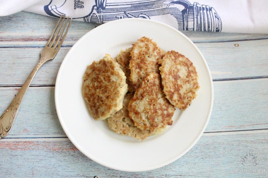7. Выкладываем оладьи столовой ложкой в сковороду с разогретым маслом. Обжариваем оладьи по 2-3 минуты с каждой стороны.