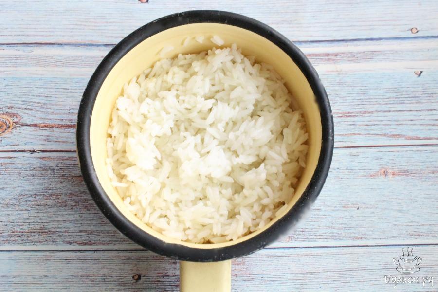 1. Рис моем и варим его до полуготовности. Добавляем к рису чуть менее стакана воды и варим рис 10 минут.