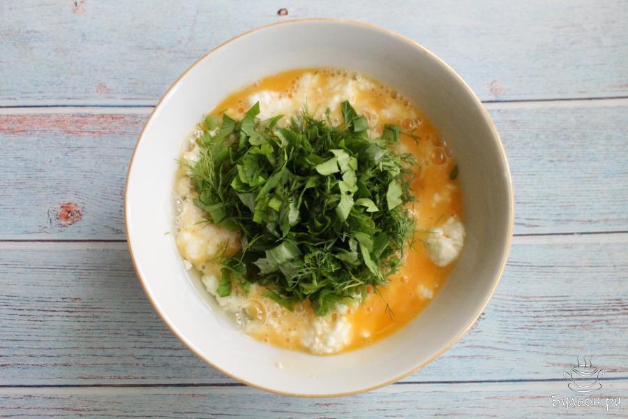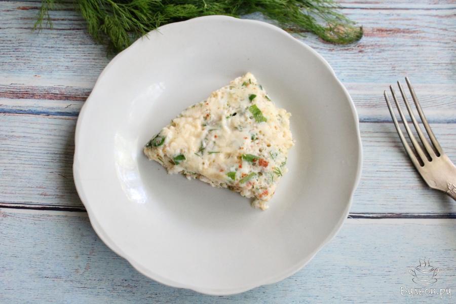 Если вам не хочется готовить классический омлет из яиц и молока, то попробуйте приготовить омлет с творогом и зеленью. Такой омлет получается пикантный, необычный, сочный, нежный, ароматный и очень вкусный. Готовится омлет просто и быстро. Легкий омлет вкусный как горячий, так и холодный, его можно подать к завтраку или предложить на полдник. Творог для приготовления омлета желательно выбирать пресный, мягкий, домашний.