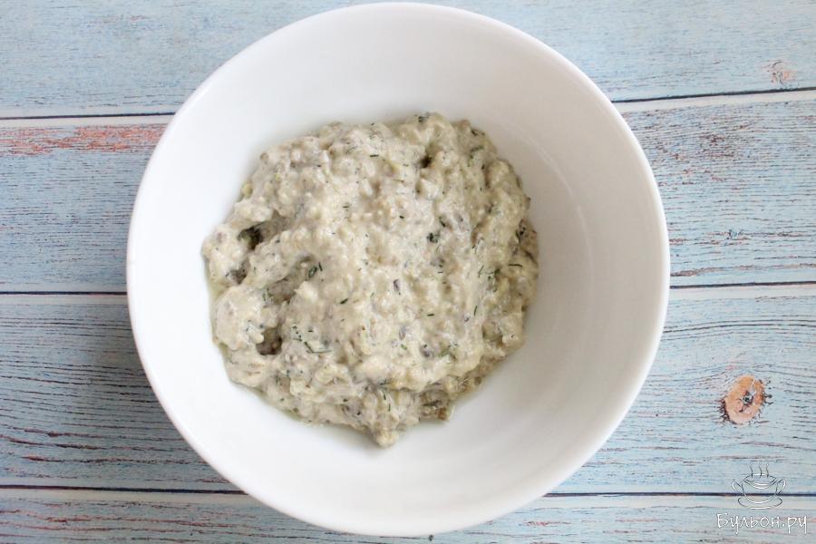 8. Измельчим баклажаны блендером, добавим подготовленный соус. Измельчим вместе баклажаны и соус, пробуем всего ли хватает, выравниваем по вкусу.