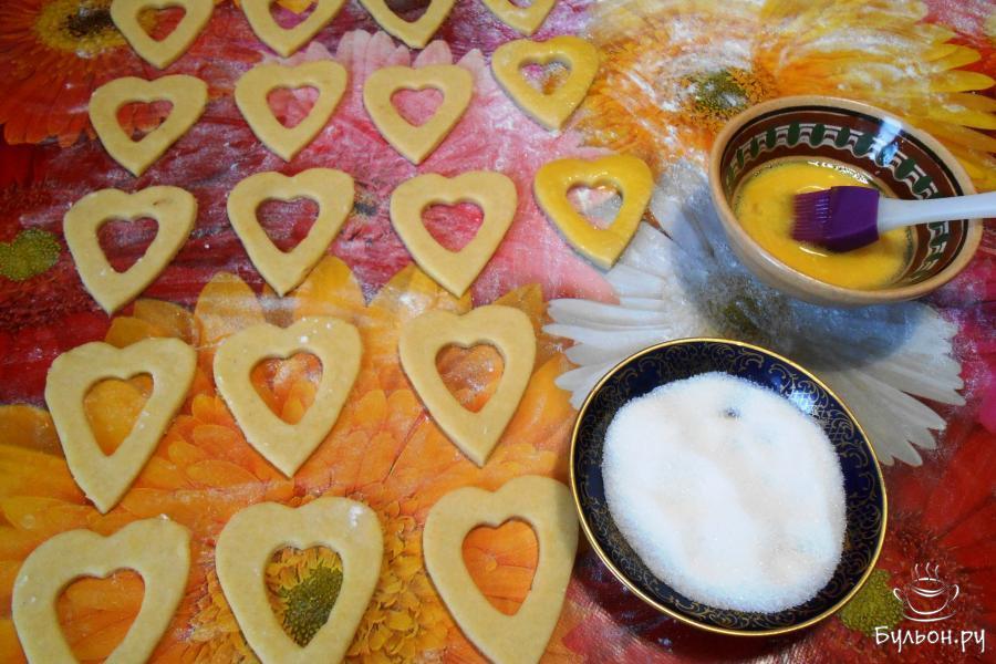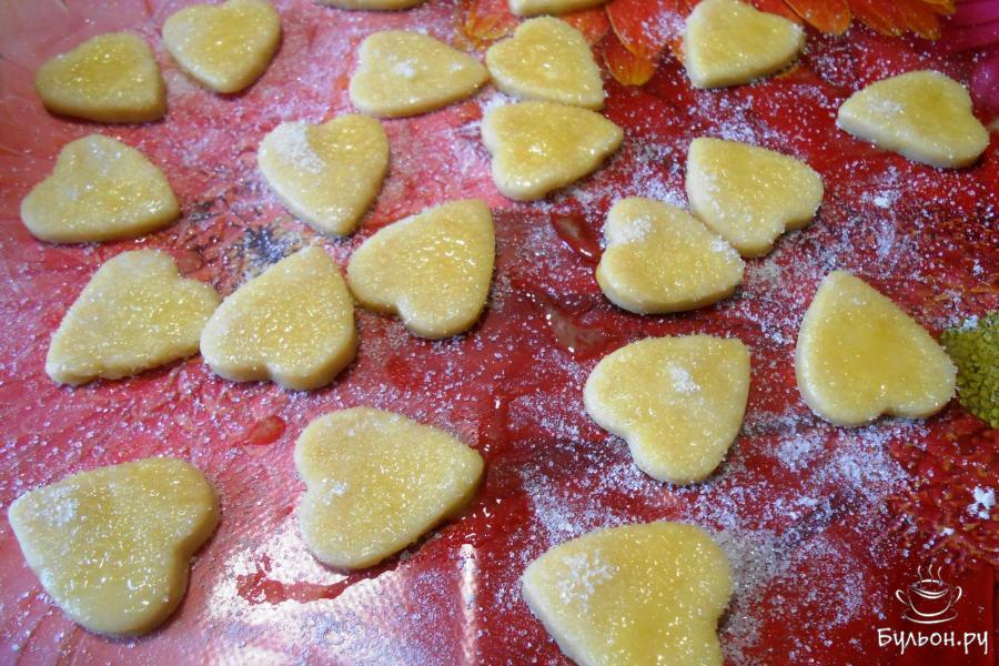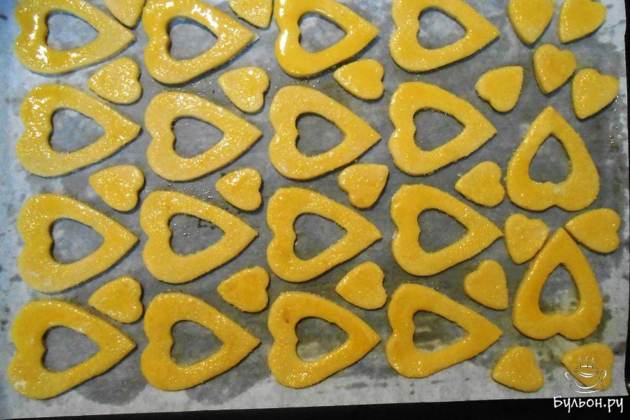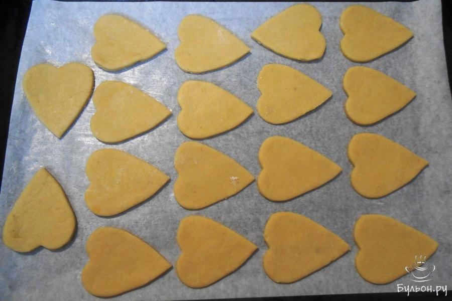 7. Выложить сердца на противень с пергаментом и отправить в заранее разогретую до 180 градусов духовку на 10 минут.