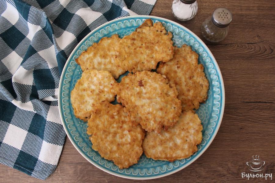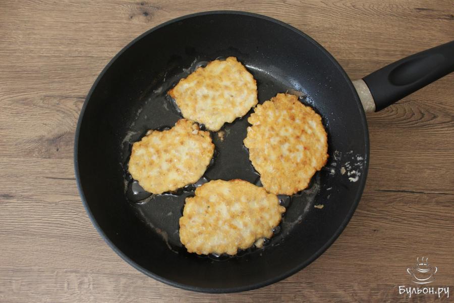 4. Сковороду с растительным маслом прогрейте на огне. После чего, столовой ложкой выложите на нее мясное тесто.