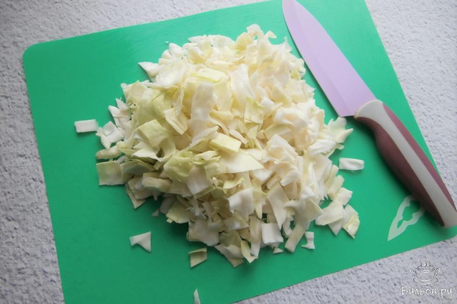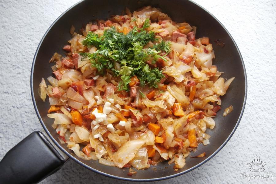 5. Добавить мелко порезанный чеснок и измельченную зелень петрушки, влить лимонный сок, солянку перемешать и протушить еще мин.5.