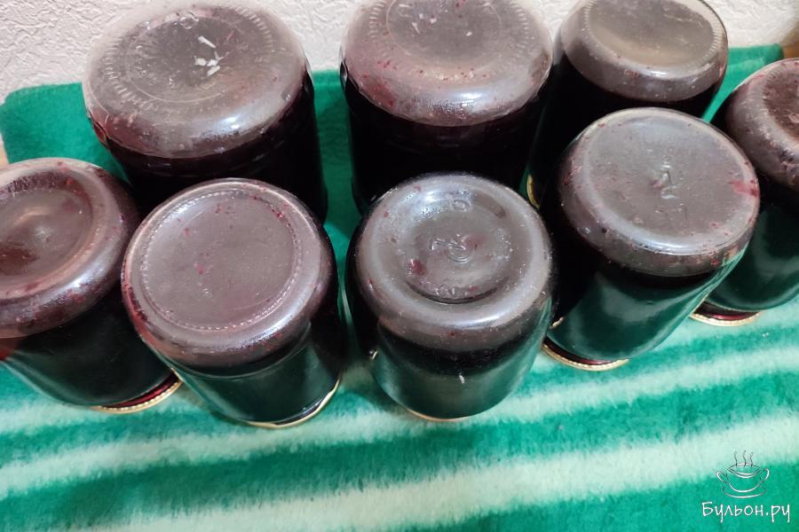 6. Затем варенье снять с огня, убрать оставшуюся пену, перемешать и разложить по чистым стерилизованным банкам, закатать стерилизованными крышками. Перевернуть и укутать банки до полного остывания. Из указанного количества ингредиентов получается 3 л варенья.