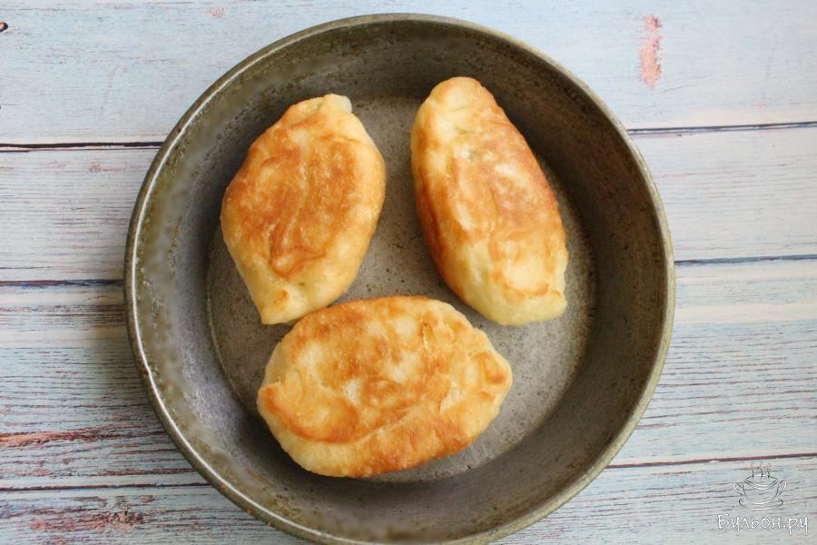 8. Жарим пирожки на сковороде, с разогретым маслом, по 3-4 минуты с каждой стороны, до золотистого цвета.