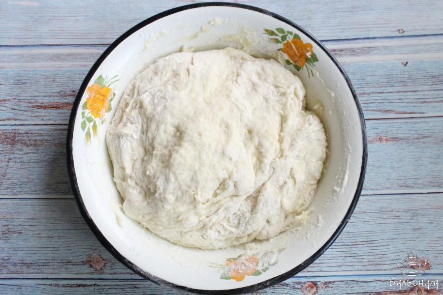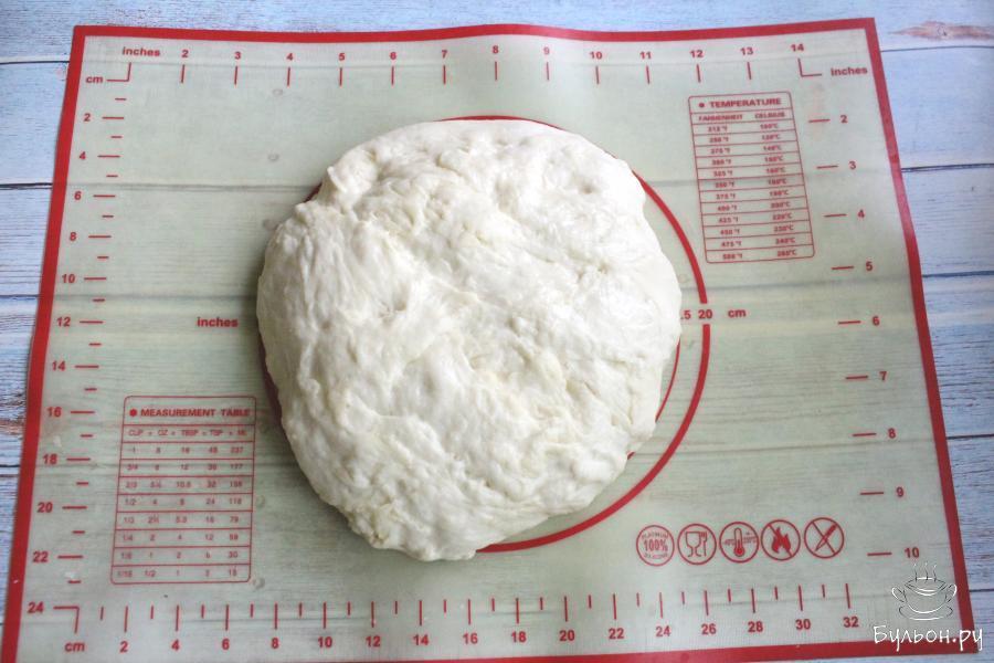 6. Готовое тесто обомнем. Если тесто липнет, то немного смазываем руки и рабочую поверхность маслом.