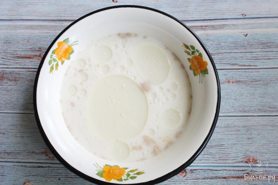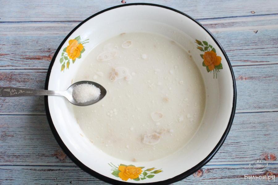 5. Добавляем в опару муку и замешиваем тесто. Муки может уйти немного больше. Убираем чашку с тестом в теплое место на час.