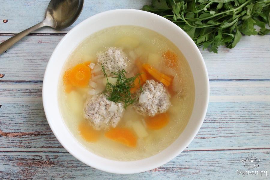 Для разгрузочных дней, или для людей придерживающихся диетического питания, предлагаю приготовить на первое - диетический суп с мясными фрикадельками. Суп получается легкий, вкусный, аппетитный, с красивым, прозрачным бульоном. Такой суп можно готовить для детей, для беременных и для кормящих мамочек. Суп готовится очень быстро и просто, с его приготовлением справится каждый кулинар. Для приготовления фрикаделек желательно использовать не очень жирный фарш.