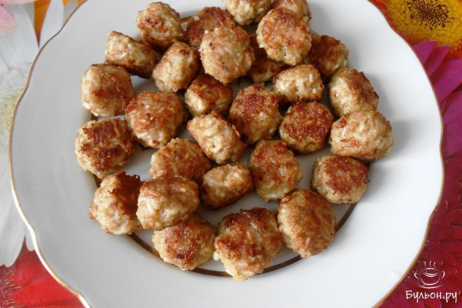 Тефтели с рисом в томатном соусе понравятся всем, особенно если подавать со спагетти. Очень сытное и вкусное блюдо на повседневный ужин. Сначала тефтели обжариваю, чтобы не развалились, а потом тушу в томатно-сметанном соусе. Для соуса предлагаю использовать в равных количествах томатную пасту и сметану, получается густой соус с насыщенным вкусом. В тефтели можно добавить специи по своему вкусу, а также размер тефтелек сделать на свое усмотрение. Я приготовила тефтели размером с грецкий орех.