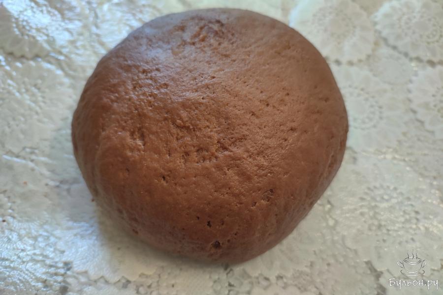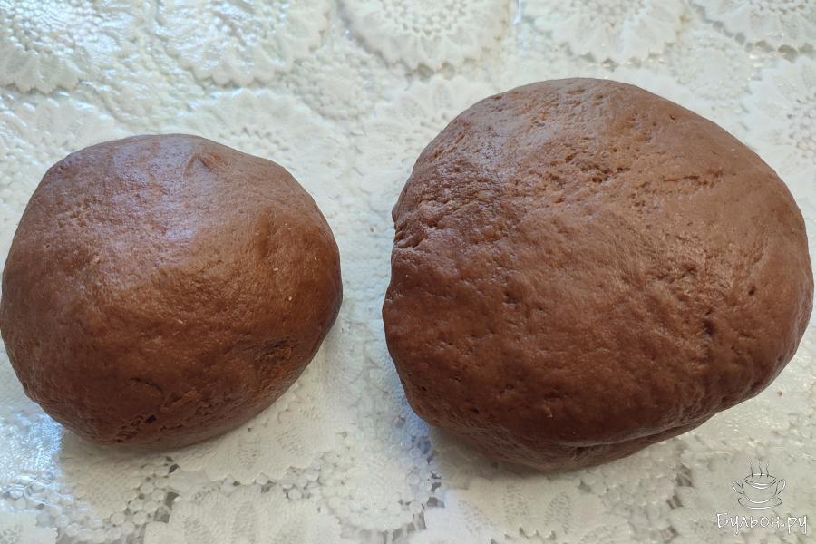 5. Поделить тесто на 2 части: побольше и поменьше. Меньшую часть положить в морозильную камеру на пол часа, завернув в пленку.