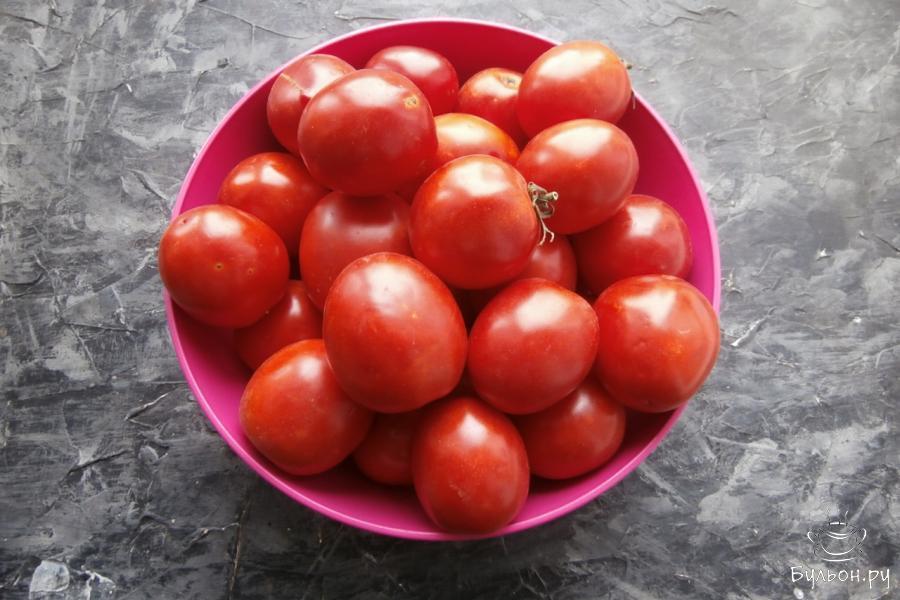 1. Расчет продуктов дан на 2 банки по 1,5 л. Помидоры нужно выбирать небольшие, тверденькие и без повреждений. Их нужно вымыть.