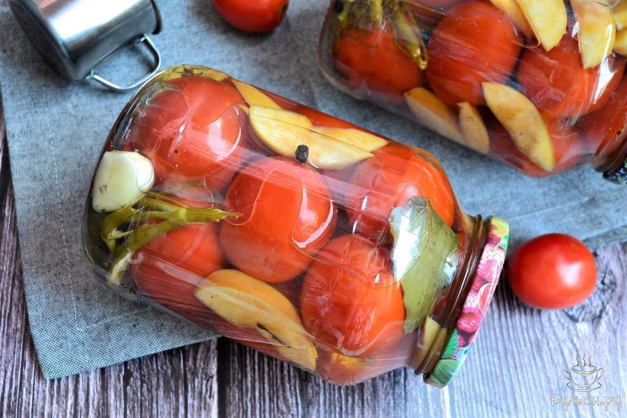 Многие хозяйки летом спешат сделать как можно больше заготовок на зиму и это правильно. Ведь в холодное зимнее время баночка консервированных овощей напомнит нам о солнышке и тепле. Я предлагаю вам заготовить изумительные помидоры с яблоками. Вкус у этой заготовки потрясающий: кисло-сладенькие помидоры с яблочным привкусом и легким послевкусием корицы, а маринад - просто чудо, он выпивается без остатка. Делаю такие помидоры не один год - очень нравятся. Попробуйте и вы обязательно.