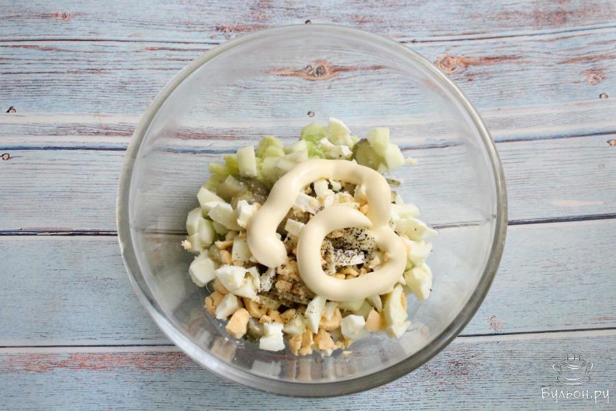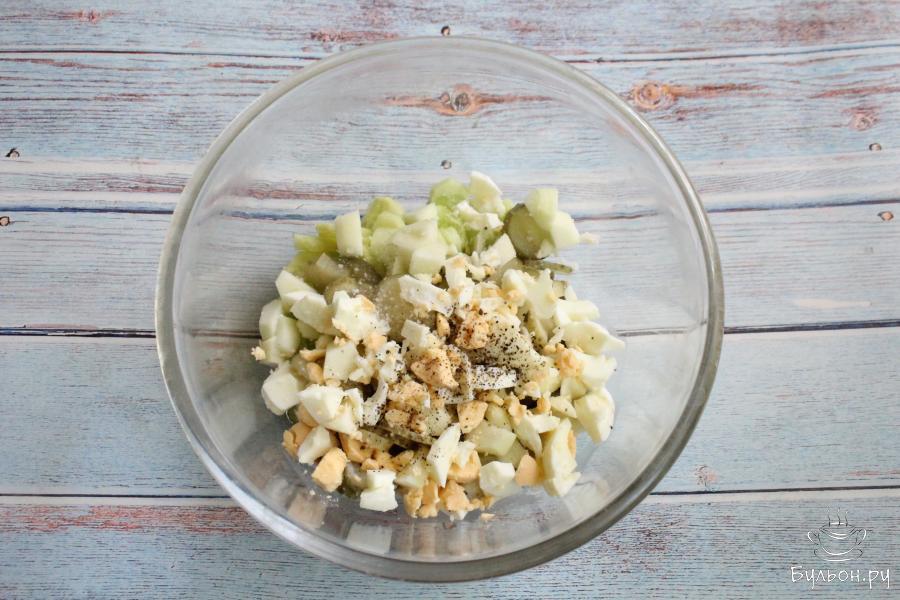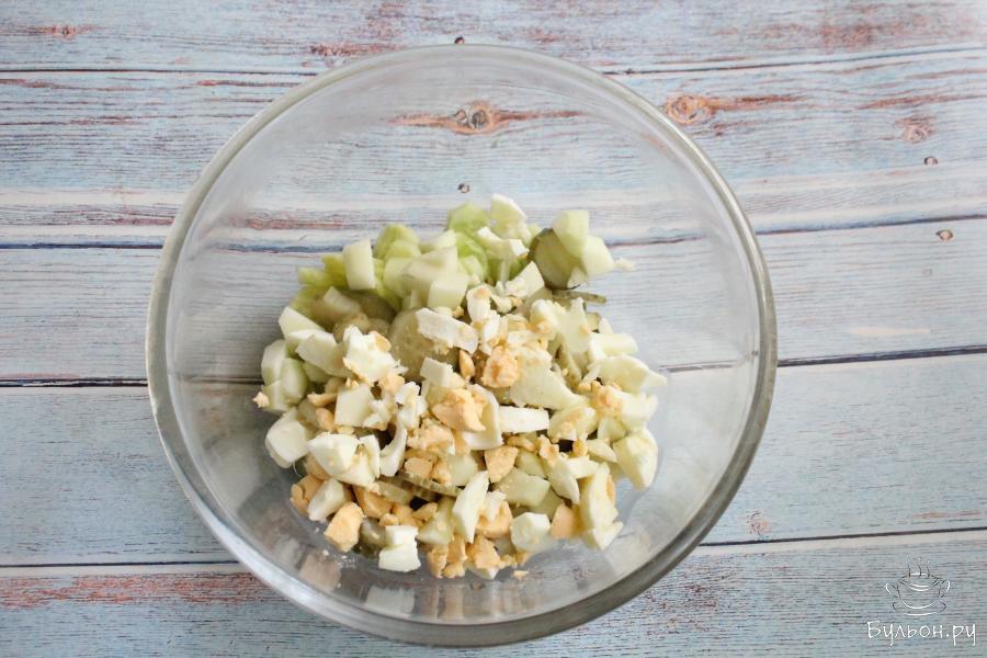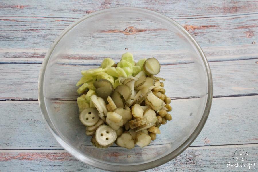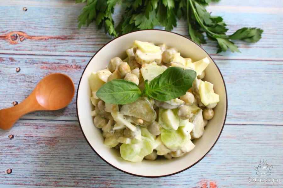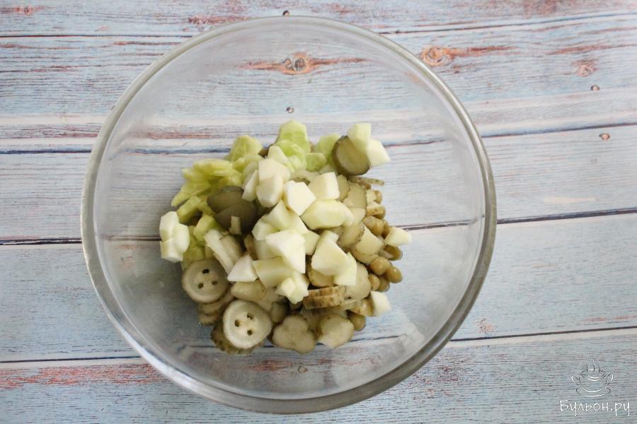 Салат с зеленым горошком, свежими и маринованными огурцами, разнообразит повседневное меню. Для приготовления такого салата, можно брать как маринованные, так и соленые огурцы, а яблоко нужно выбирать кислых сортов. Салат получается вкусный, нежный, насыщенный, с пикантной кислинкой. Готовится такой салат на скорую руку, попробуйте его приготовить, он наверняка понравится многим. Вместо майонеза, этот салат можно заправить легкой, не жирной сметаной.