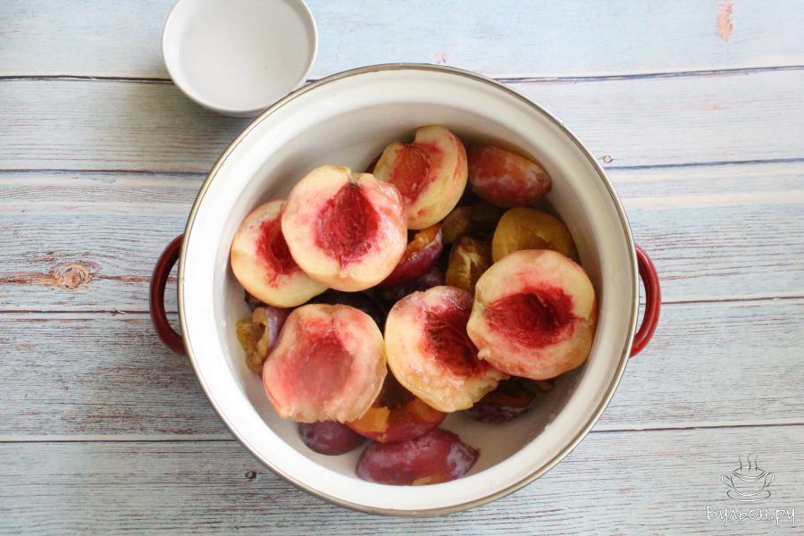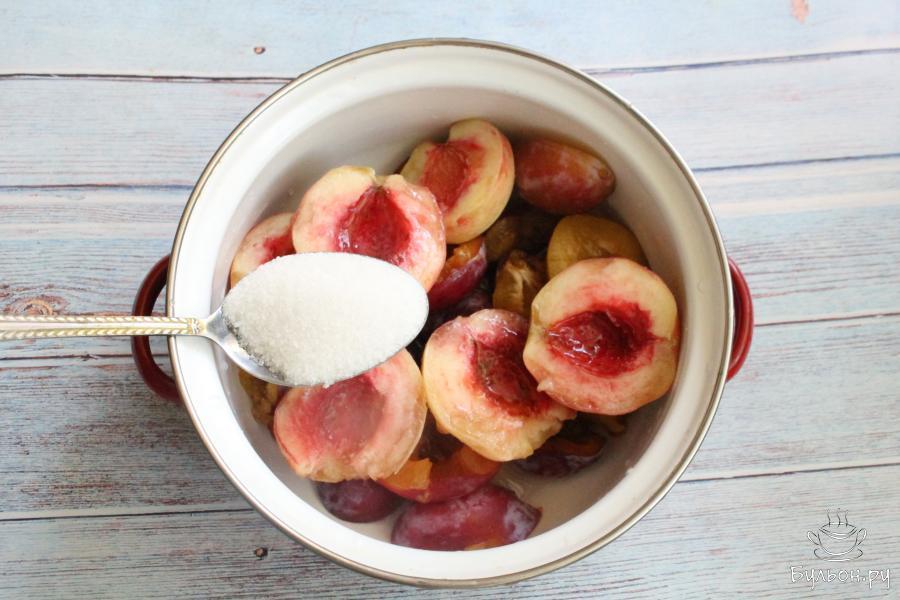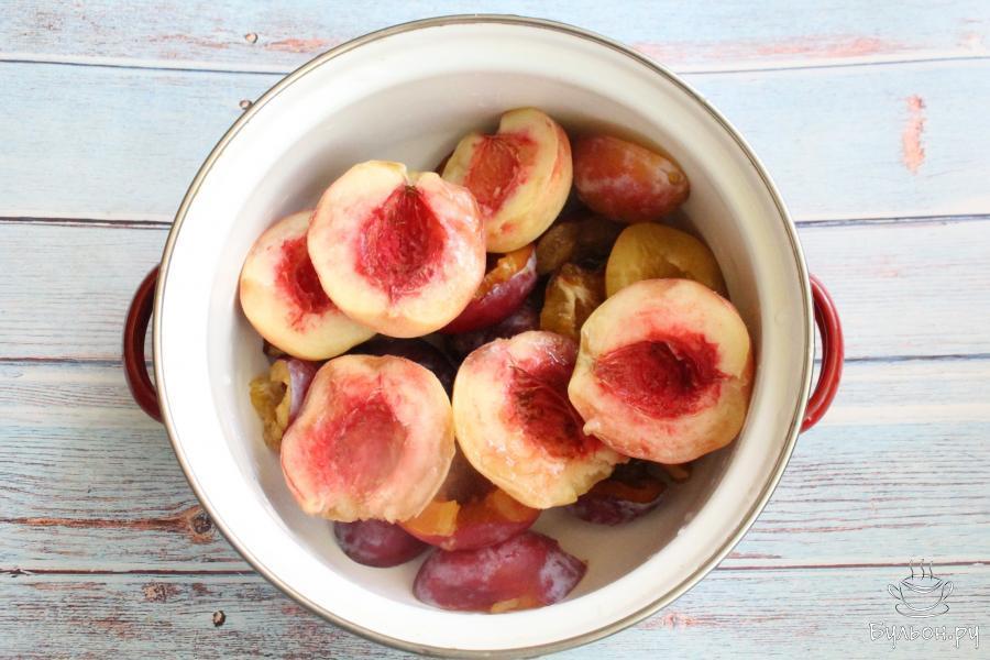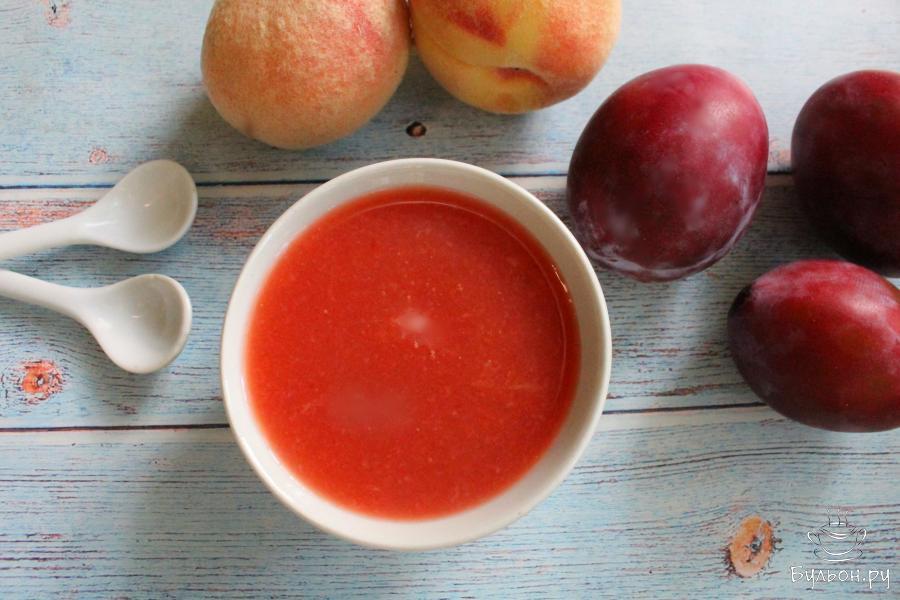Персиково-сливовый джем можно приготовить на каждый день или закрутить такой джем на зиму. Для приготовления этого джема подойдут персики и сливы совершенно любых сортов, подойдут даже мятые или переспелые фрукты. Единственный нюанс, количество сахара нужно подбирать исходя из своего вкуса и вкуса фруктов. Джем получается очень ароматный, нежный, аппетитный. Джем можно уварить до густого состояния или же оставить его жидким, чтобы удобно было обмакивать в него блинчики, оладушки или гренки.