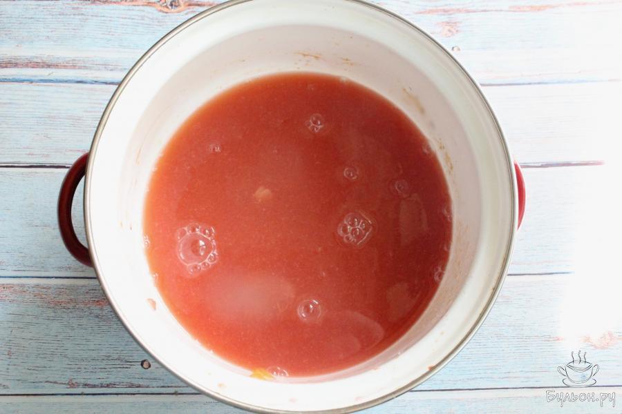 7. Затем увариваем джем до нужной густоты, помешиваем. Для густого джема уваривать придется около часа.