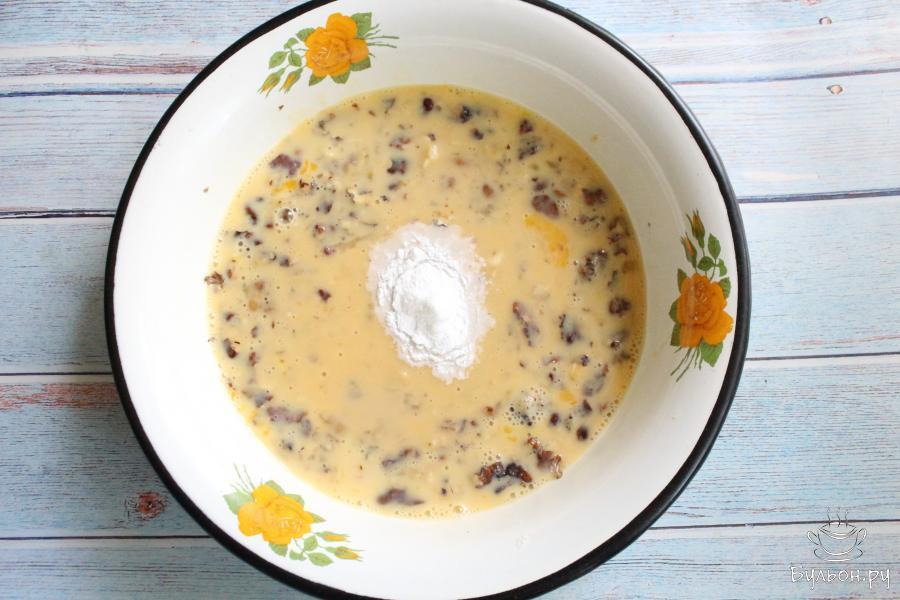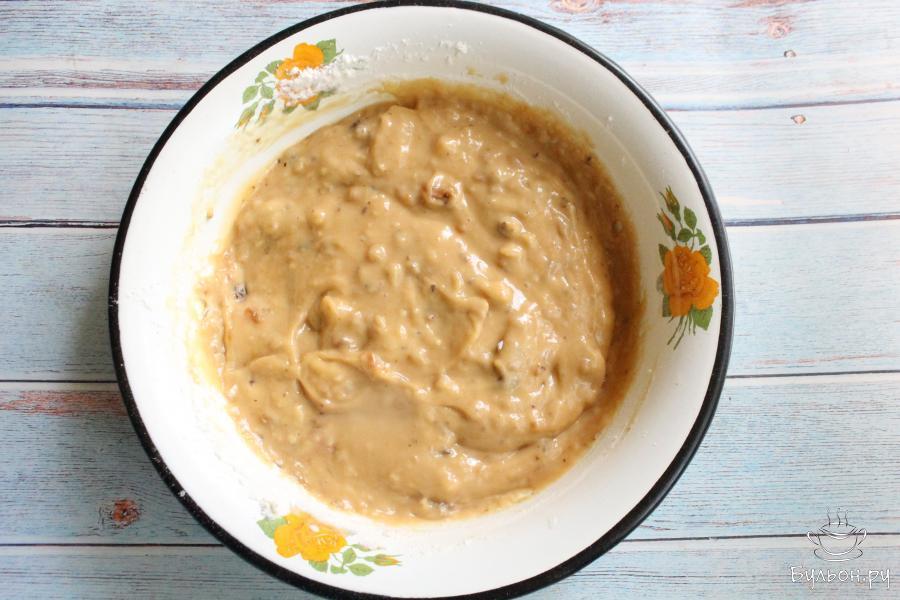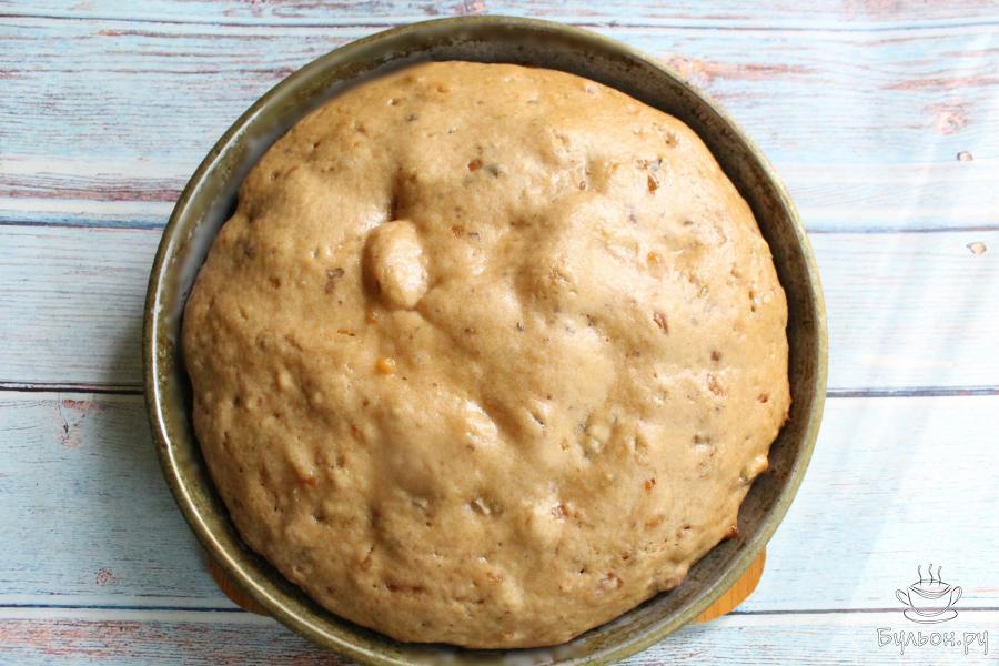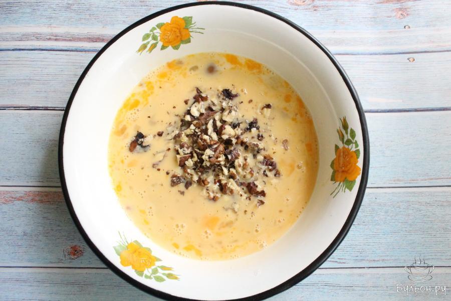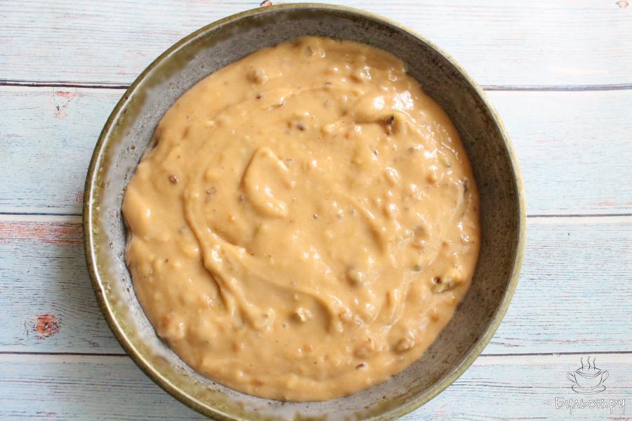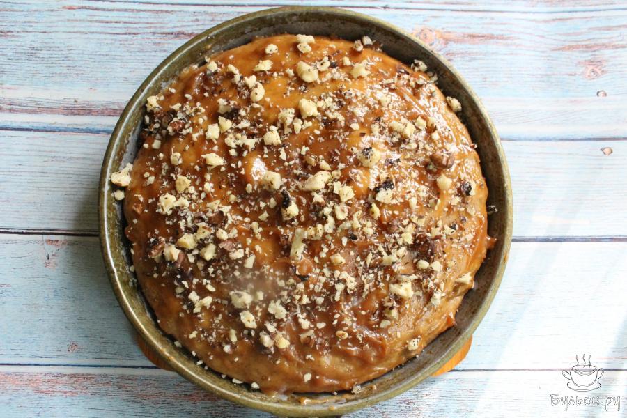 3. Добавляем в тесто, большую часть, крупно нарубленных орехов. Оставляем немного орехов для украшения верха пирога.