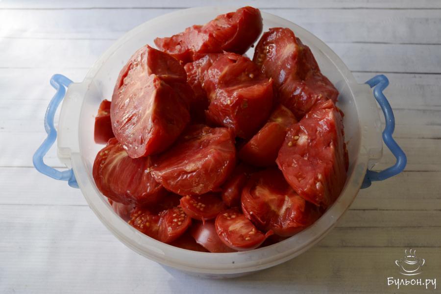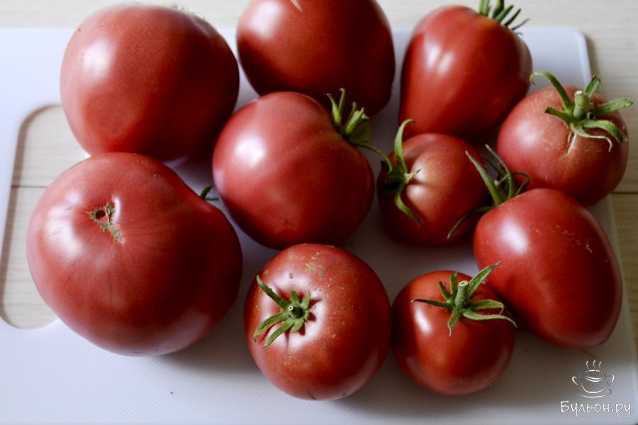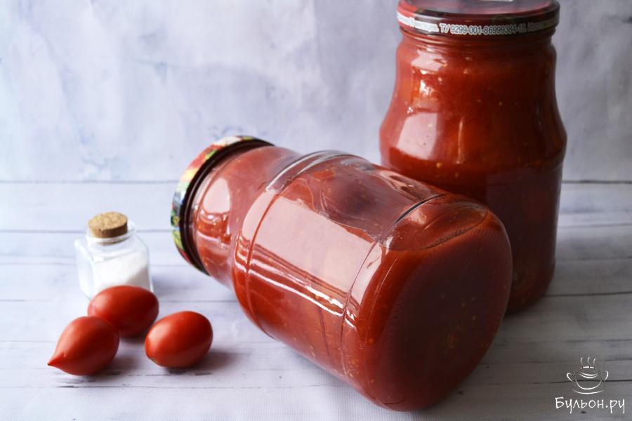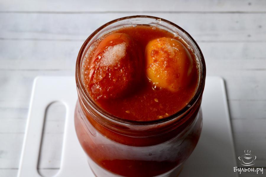 Рецепт - помидоры в томатном соке на зиму - не очень сложный и позволяет израсходовать сразу большое количество томатов. Для приготовления томатного сока потребуются спелые помидоры любого размера. А для заполнения банки лучше взять крепкие, не очень спелые помидоры небольшого размера. Томатный сок можно получить, прокрутив помидоры на мясорубке, или с использование соковыжималки. По желанию, в банку можно добавить перец горошком или чили, гвоздику, чеснок. Ингредиенты указаны на одну 2-х литровую банку.