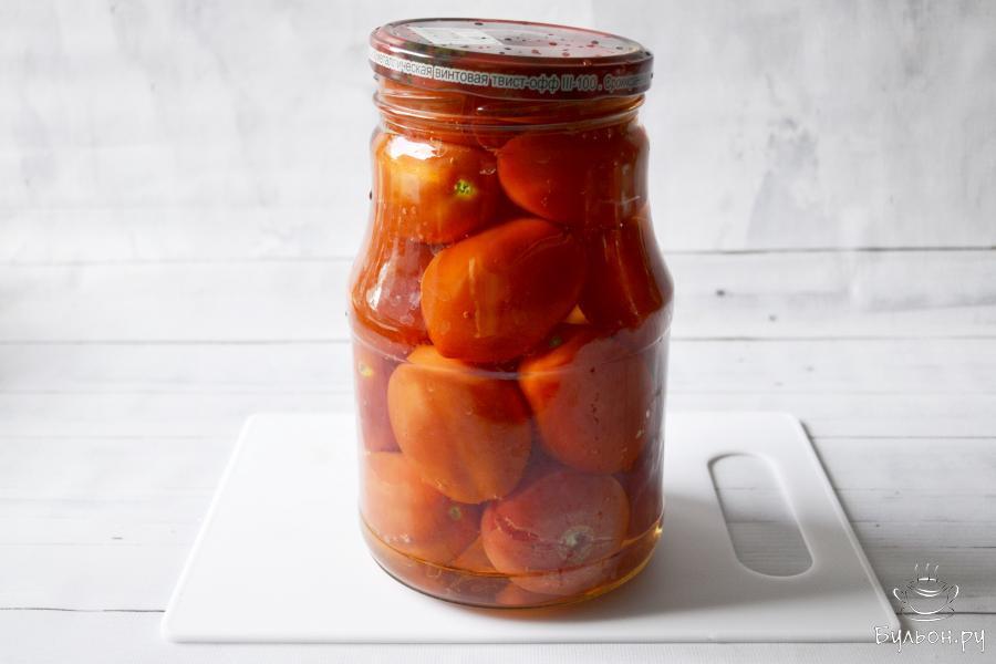 11. Остывшие банки уберите в прохладное место на хранение. Помидоры и сок получаются вкуснейшие. Помидоры хороши к мясу, вареной картошечке, в суп да и просто, как закуска.