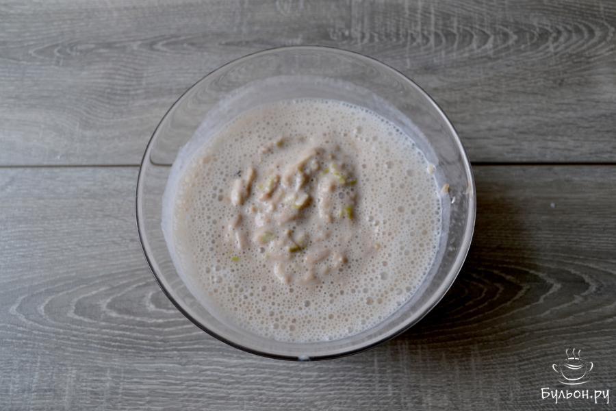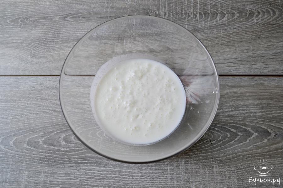 2. Перемешайте соду в кефире и оставьте на 10 минут. За это время кефир начнет пузыриться, реакция соды с кефиром началась. Добавьте сахар и щепотку соли.