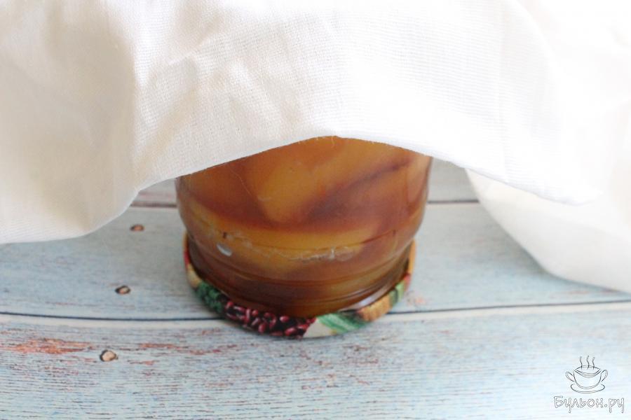 8. Закрываем баночку закручивающейся крышкой, переворачиваем баночку и укутываем на сутки, чем-нибудь теплым.