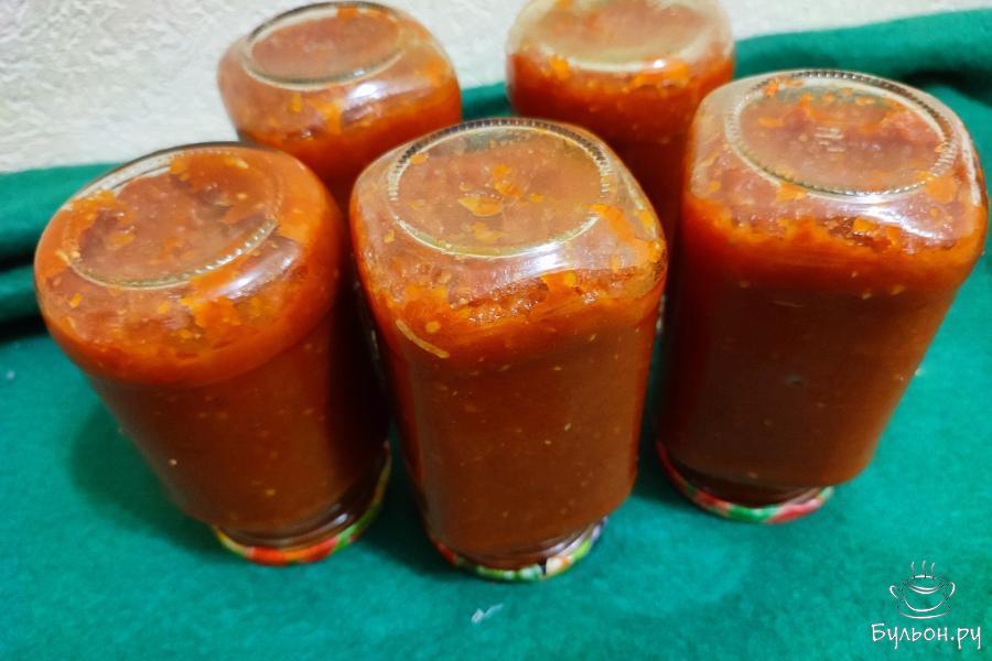 Многие хозяйки делают заготовки на зиму. Домашняя консервация зимой, будет как нельзя кстати на обеденном столе. Предлагаю приготовить густой соус сацебели на зиму. В сацебели я добавила для аромата хмели-сунели, а острый и черный молотый перец исключила. Если любите соусы поострее, то можно добавить и перец. Чтобы долго не уваривать, во время варки я удаляю лишний сок. Подробнее расскажу в рецепте, как это сделать. Из указанного количества ингредиентов получается 2.6 л соуса. Очень вкусный, ароматный и пикантный соус.
