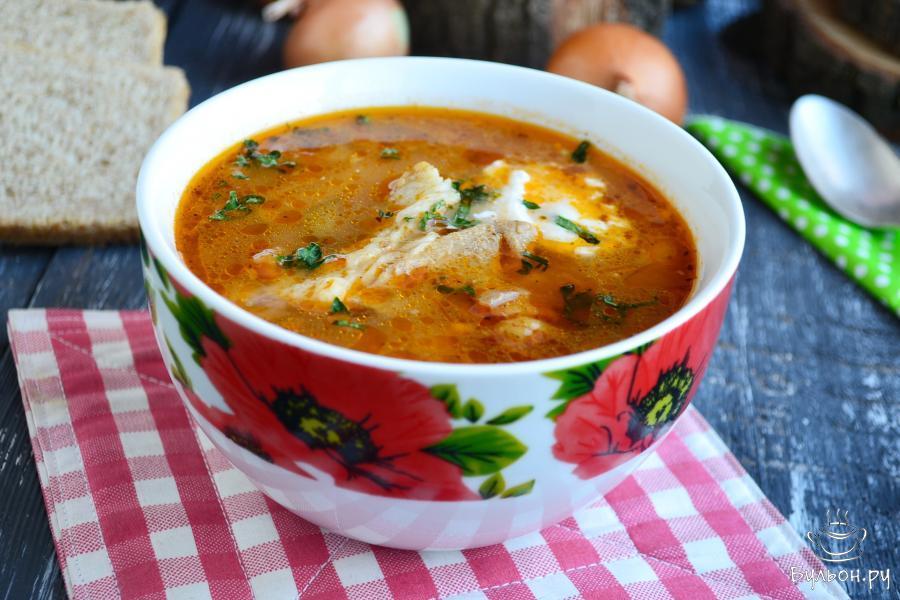 9. Рассольник со свининой и рисом разлить по тарелкам и подать к столу со сметаной и зеленью. Приятного аппетита.