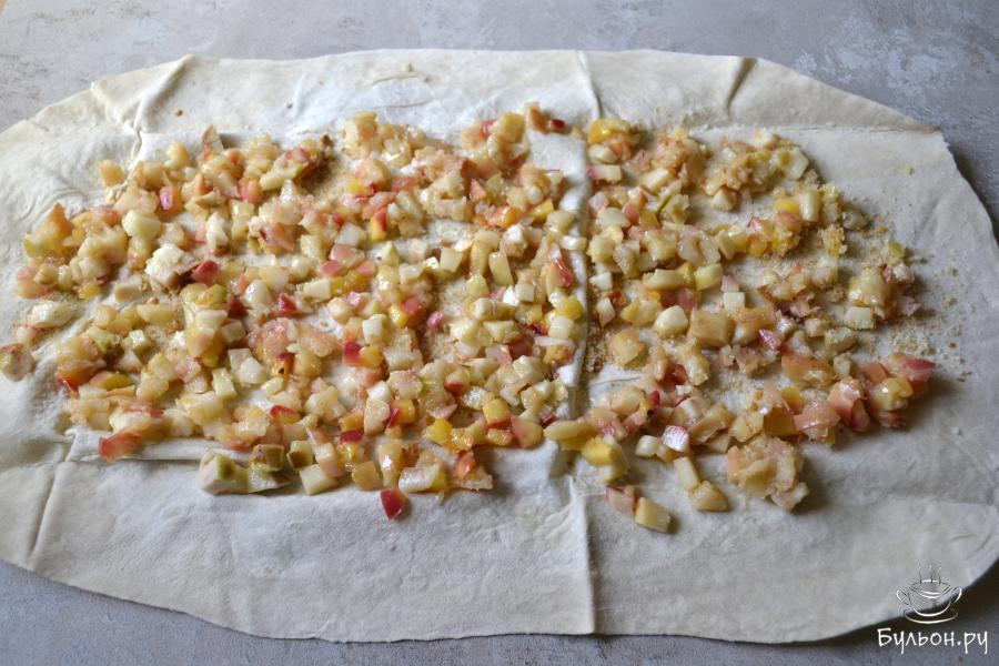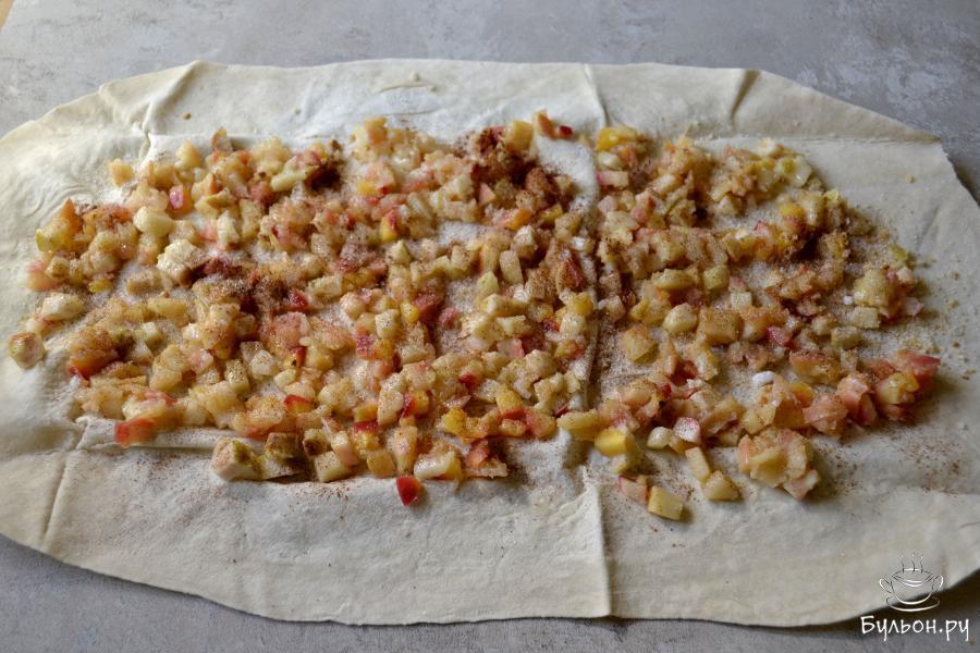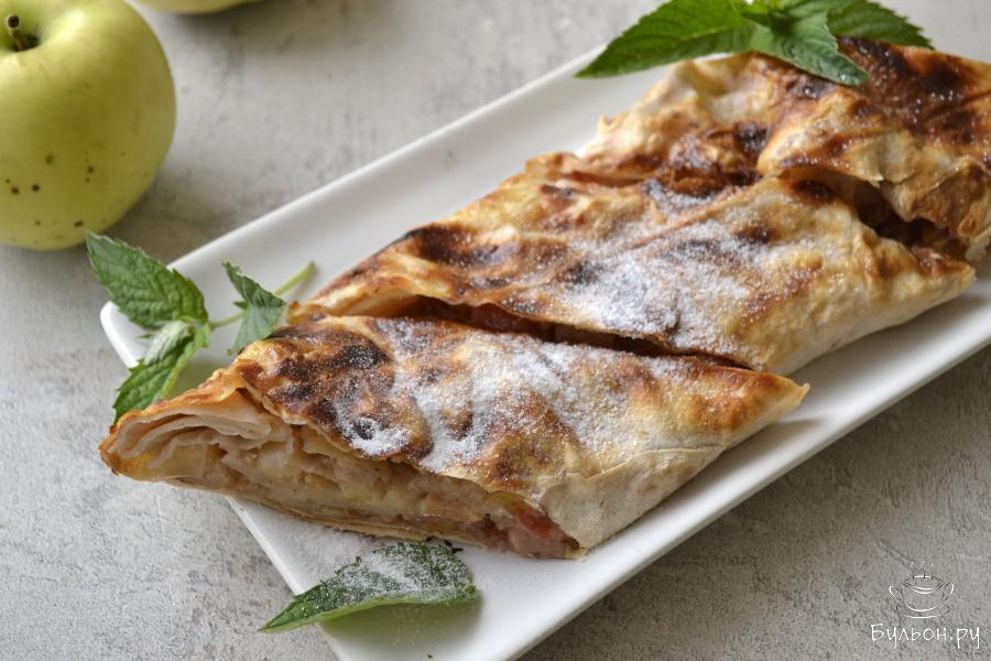 9. Штрудель из лаваша с яблоками готов. По традиции, на кусочек штруделя положьте шарик мороженого и сразу же подайте к столу. Приятного аппетита!