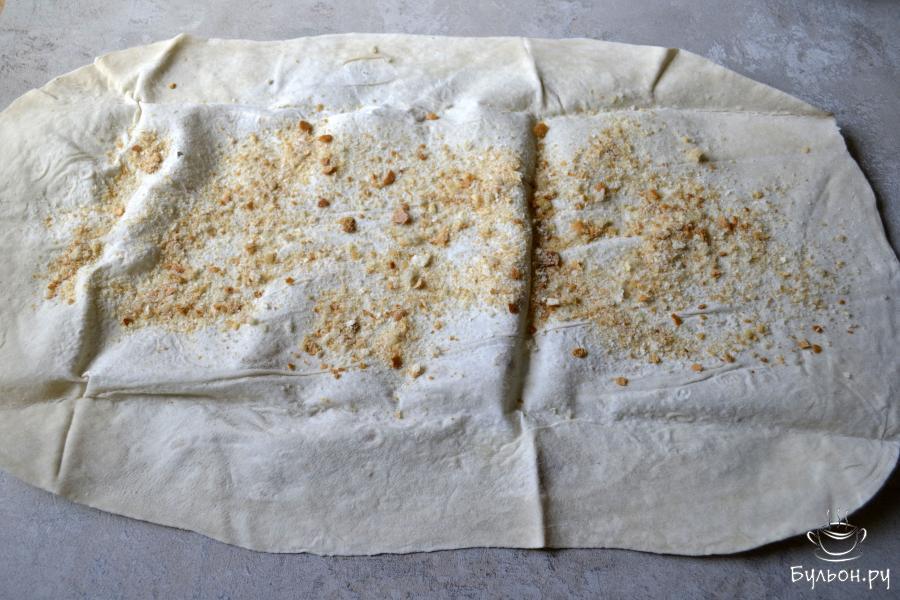 Штрудель - это очень вкусная выпечка из вытяжного теста с яблоками. Но если у вас есть тонкий лаваш, процесс приготовления будет гораздо легче и быстрее. Штрудель получится с таким же хрустящим, тонким тестом и сочной, сладкой, ароматной, яблочной начинкой. Яблоки лучше немного обжарить на сливочном масле. А панировочные сухари приготовить из булочки. В начинку к яблокам, кроме корицы, можно добавить распаренный изюм. Сахар добавляйте исходя из сладости яблок и собственного вкуса.