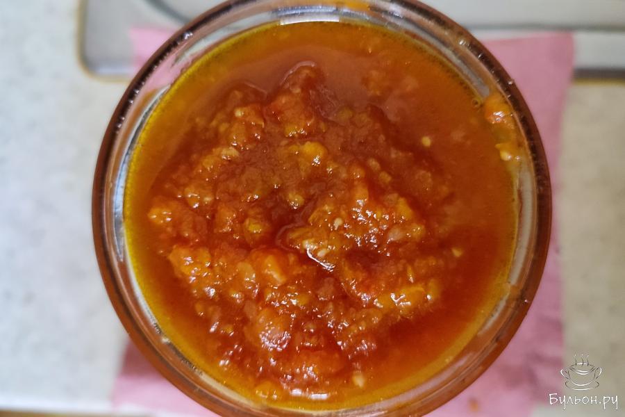 Сезон консервации уже подходит к концу. Но на прилавках еще есть свежие овощи, которые можно сохранить на зиму в виде закруток. Сегодня хочу поделиться с вами очень вкусной заготовкой - яблочной аджикой на зиму. Яблоко в аджике не ощущается, но придает приятный вкус и аромат соусу. Такая аджика прекрасно дополнит любой гарнир или мясное блюдо. Острый перец я не добавляю, чтоб можно было дать ребенку. Но если любите аджику поострее, то я укажу в ингредиентах его необходимое количество. Также хочу отметить, что в данном рецепте уксус не добавляется, что является большим плюсом и делает заготовку более полезной. Кислоты от томатов вполне достаточно, чтобы консервация хорошо хранилась. А храню я аджику в квартирных условиях.