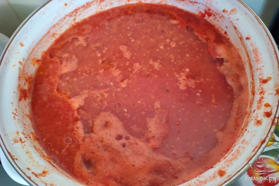 4. Варить 1.5 часа, на небольшом огне, не накрывая крышкой. Время от времени помешивать деревянной лопаткой.