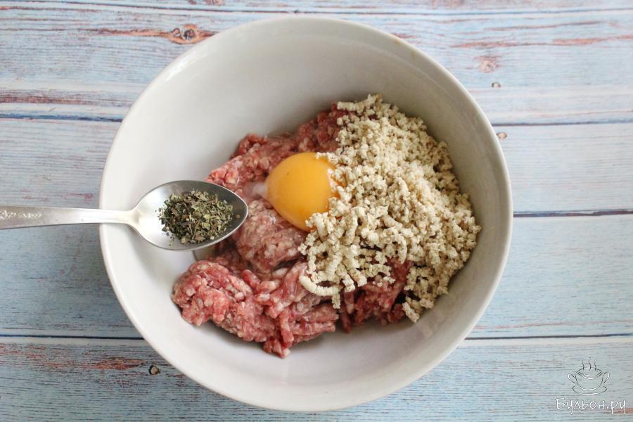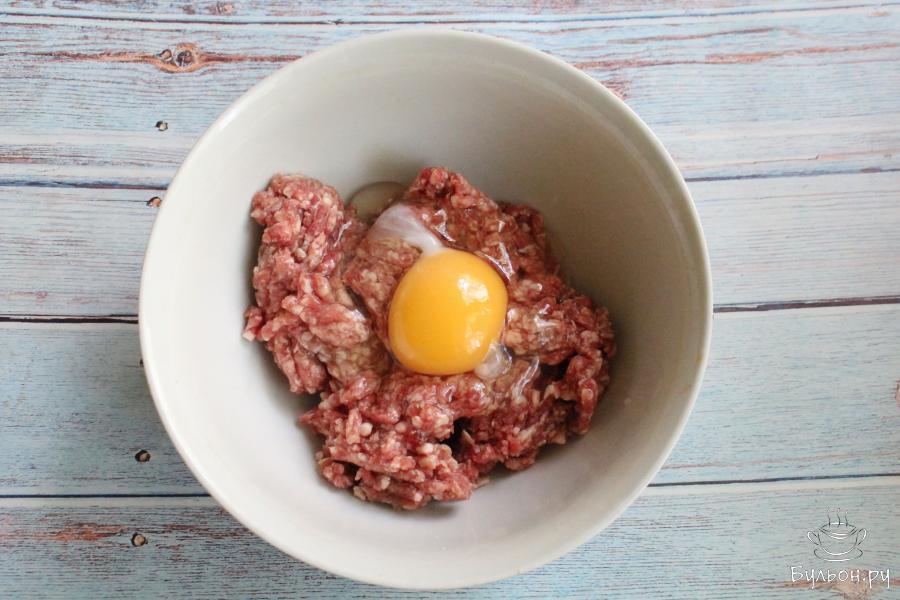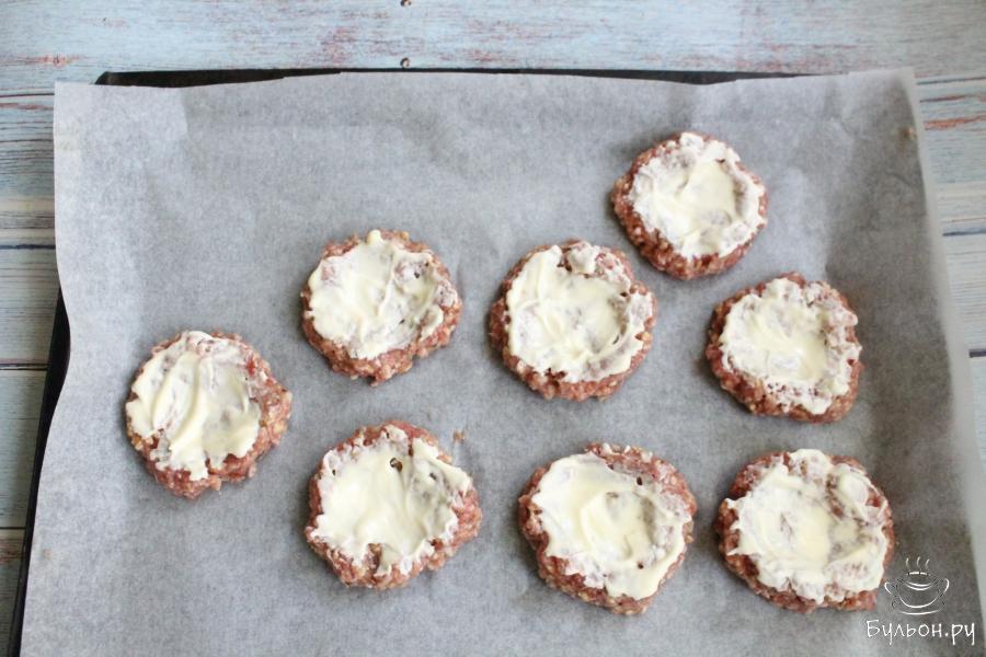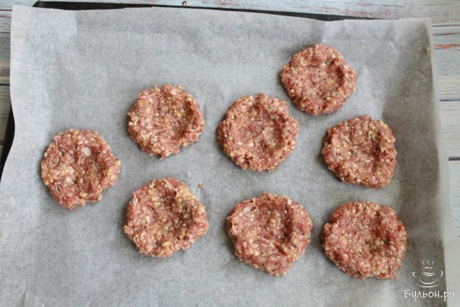 5. Сформировать из фарша шарики, выложить их на противень или в форму для запекания. Сделать на мясных шариках углубления так, чтобы получились что-то вроде "чашечек".