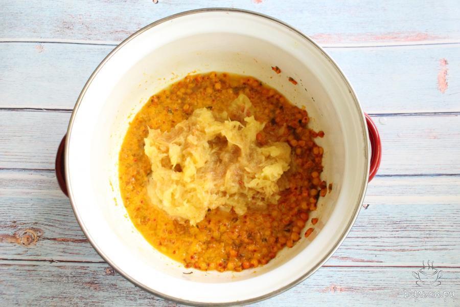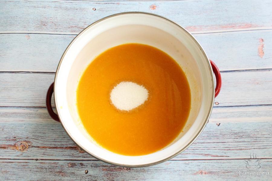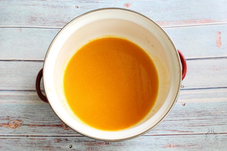 8. Снова варить повидло на небольшом огне. В процессе варки, повидло постоянно помешивать. Если появляется пенка, то убрать ее. Варить повидло до нужной густоты от получаса до часа.