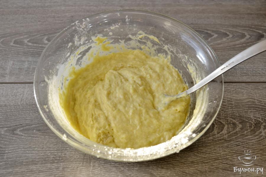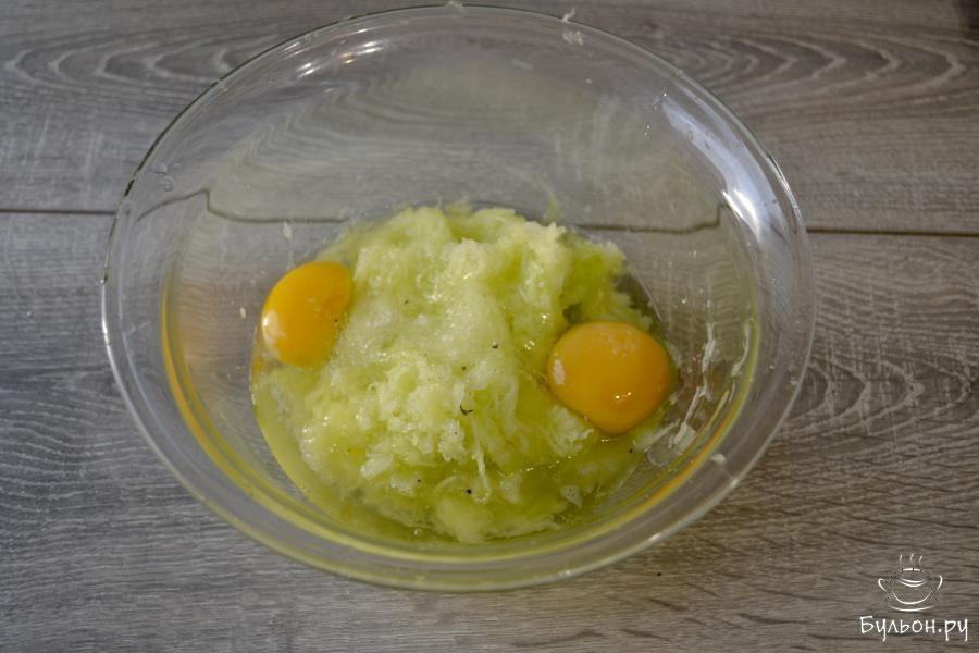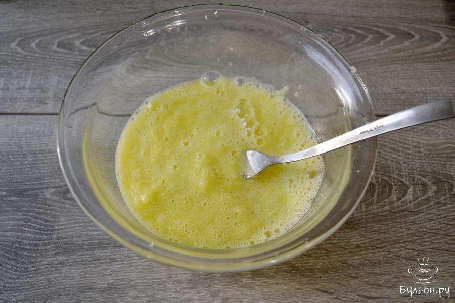 3. Тщательно вилкой взболтайте натертый кабачок с яйцами, чтобы получилась масса однородной консистенции.