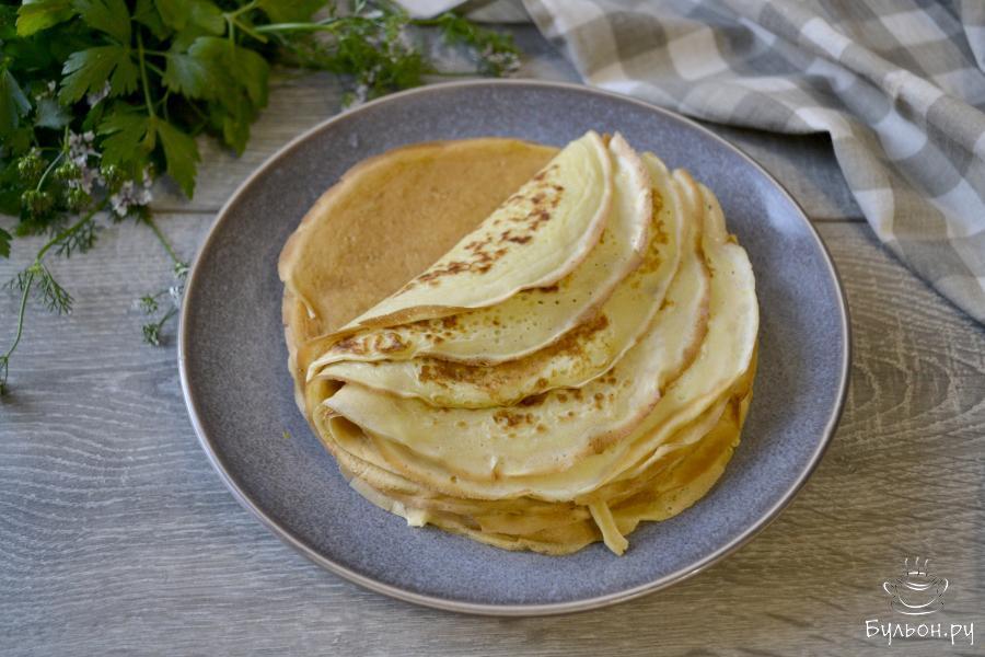 10. Испеченные блинчики смажьте сливочным маслом и подавайте к столу со сметаной, вареньем, джемом. Приятного аппетита!