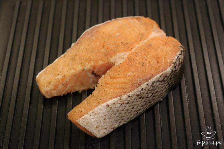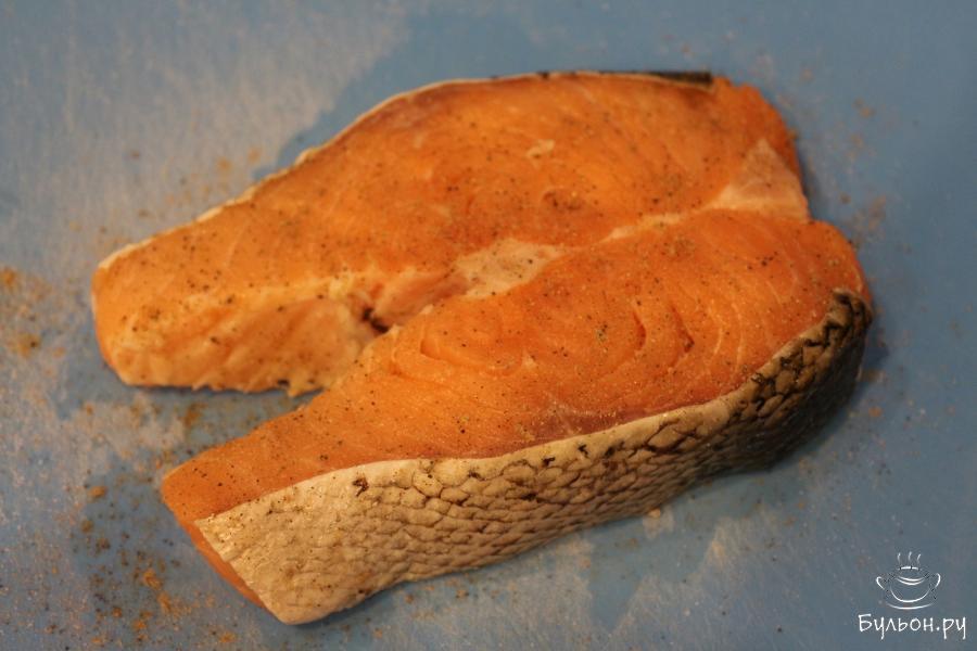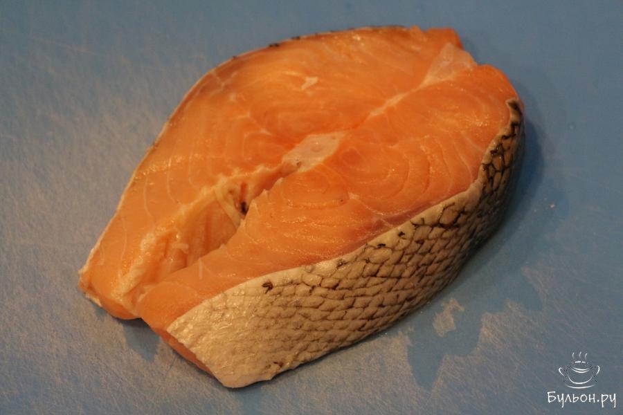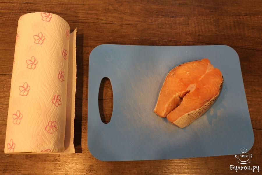 1. Подготовить рыбку. Из холодильника достать охлажденный стейк лосося и взять бумажные полотенца или салфетки.