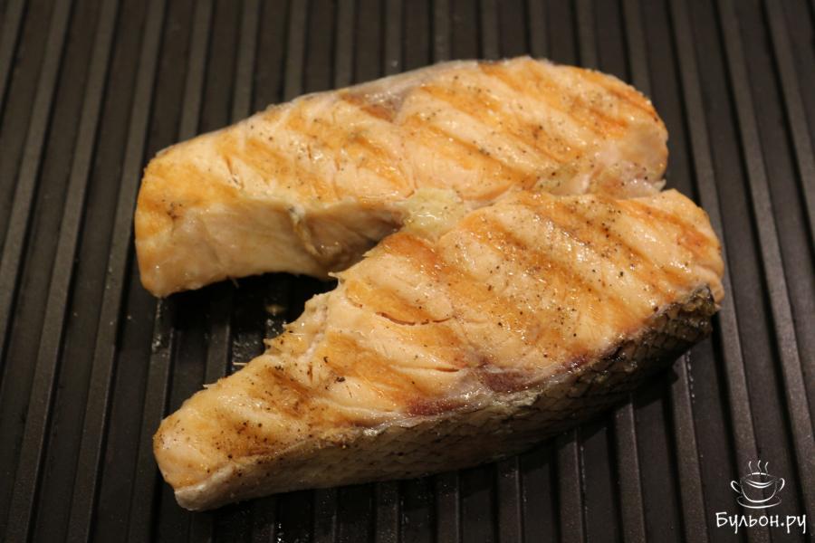 Лосось на гриле готовится очень просто и быстро, требует минимального количества ингредиентов, а получается необыкновенная вкуснятина. Главное правило данного рецепта, это покупка свежей и качественной рыбки. Стейк берите толщиной примерно 2,5 сантиметра. Поскольку, если стейк будет слишком толстый, то такой кусок не прожарится полностью и она не приготовится равномерно. Если же рыба будет слишком тонко нарезана, то в этом случае стейк получится сухим.