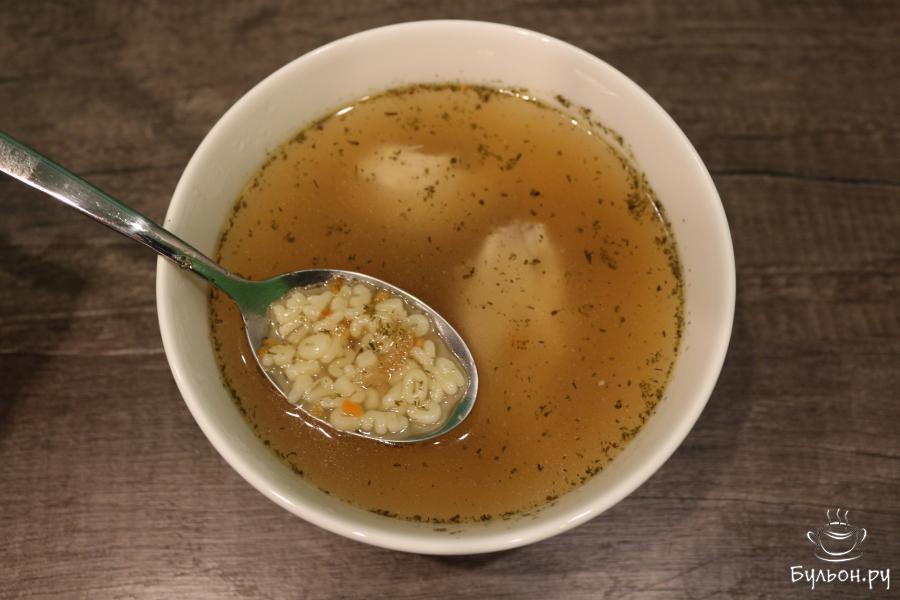 Когда нужно сготовить суп, но на него совсем нет времени, сварите куриный бульон с буковками и универсальной приправой с овощами. Он очень легок в приготовлении, вкус получается легким, но довольно богатым за счет использования особой овощной приправы "жареные овощи". В состав входят жареный хрустящий лук, сушеная морковь, паприка, немного приправ и зелень. Совсем не обязательно использовать такую овощную приправу, можно найти на полках в магазинах что-нибудь подобное и вам уже не придется пассировать лук, морковь, резать зелень, что займет у вас определенное время.