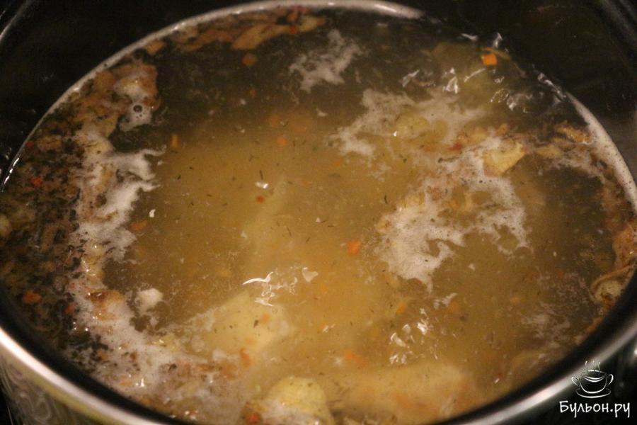 4. Затем остается совсем немного. Отварить макаронные изделия с овощами. Из супа достать филе и разделить его на несколько кусочков.