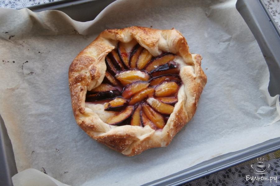 4. Выпекать галету при 200 град. около 20-25 минут - до красивой румяности. Сливы внутри станут мягкими, выделят много сока.
