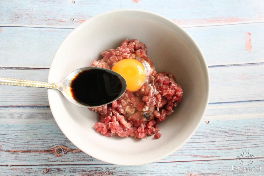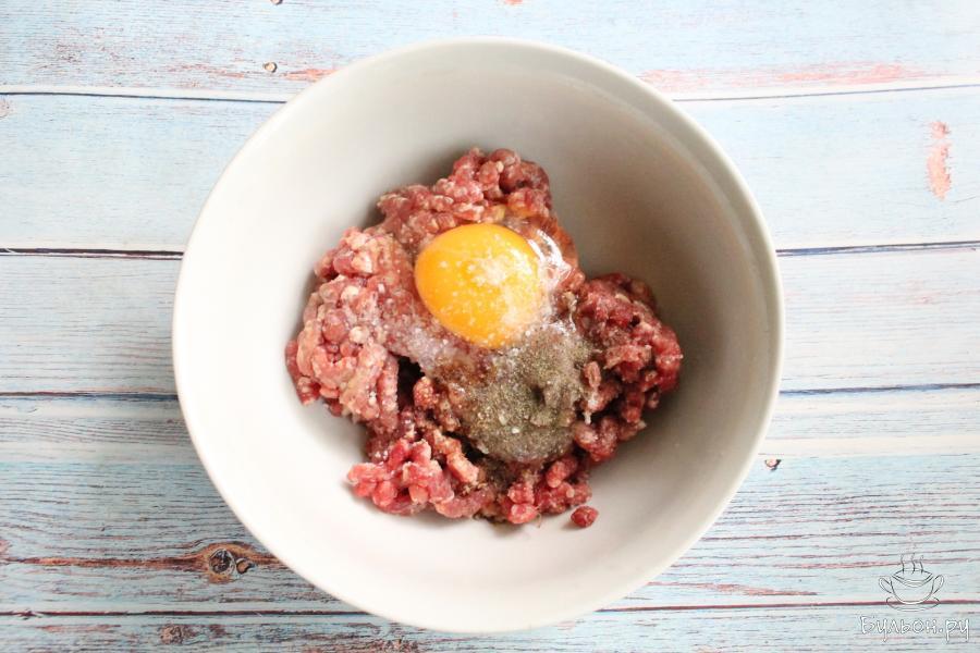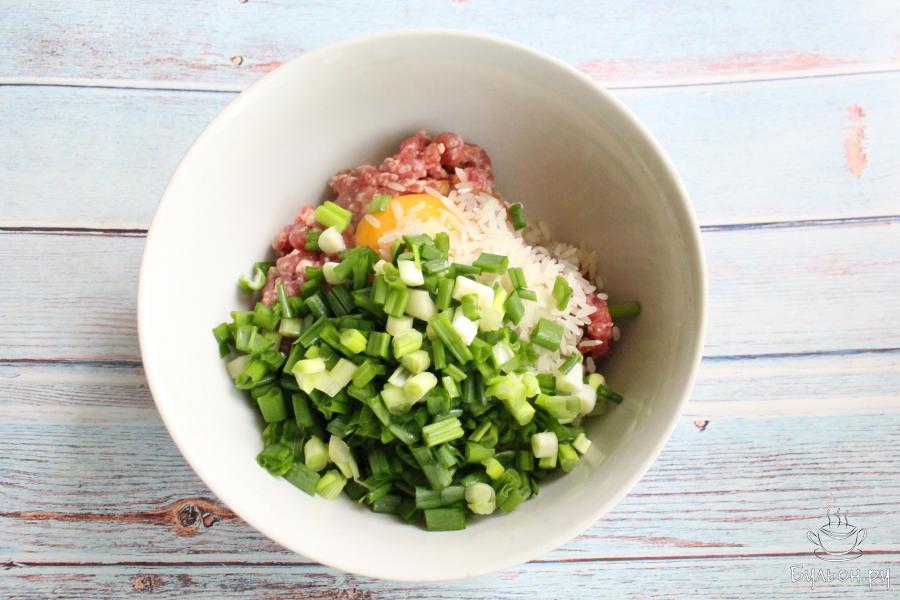 5. Зеленый лук промыть, почистить, обсушить и мелко нарезать. Добавить лук к фаршу, тщательно перемешать.