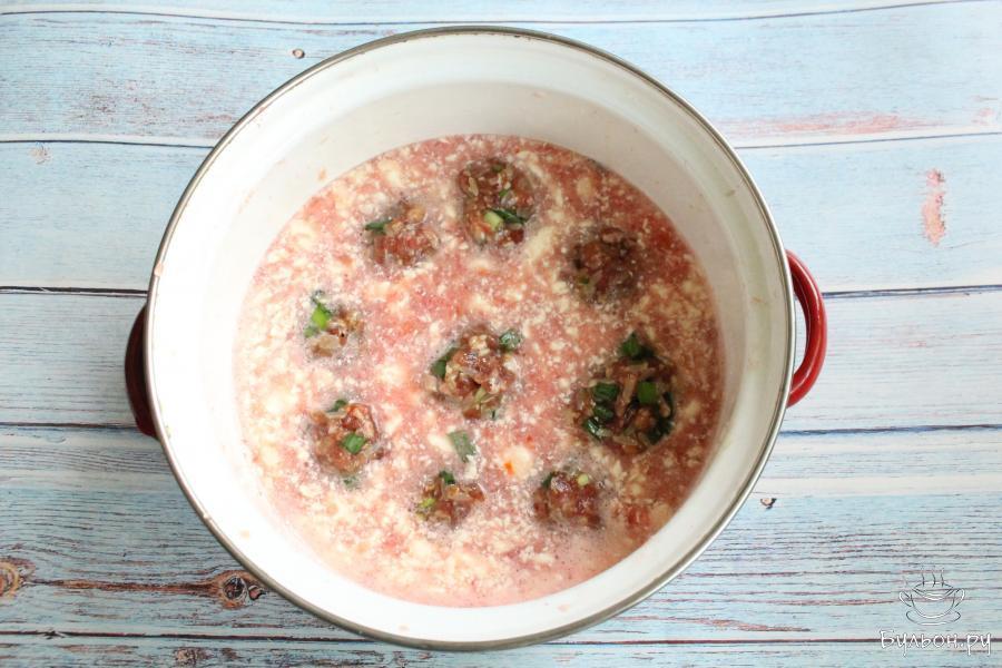 6. Приготовить соус: помидоры промыть и перетереть через терку. Добавить в томатную массу майонез, воду, добавить соль, хорошо перемешать.