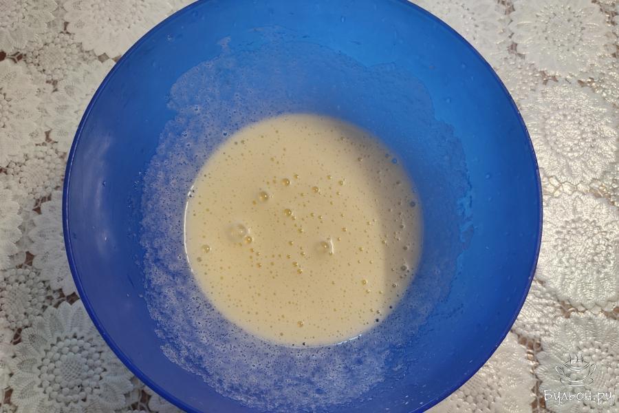 2. Яйцо взбить до пышной массы с сахарным песком и ванилином. Добавить подсолнечное масло. Размешать венчиком.
