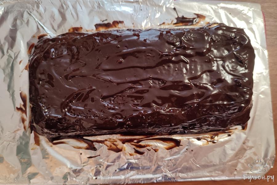 7. Готовый сырник вынуть из формы, полить растопленным шоколадом. Охладить в холодильнике несколько часов.
