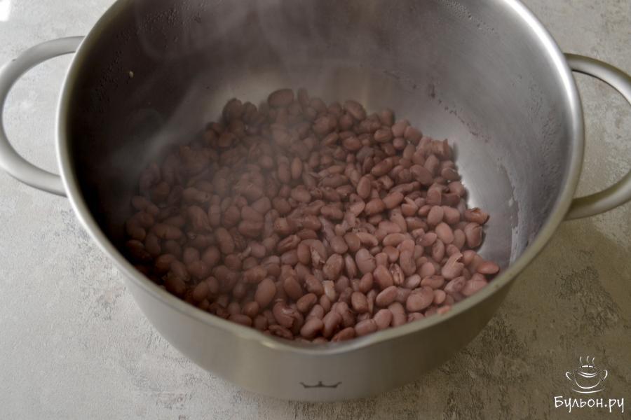 3. Утром залейте фасоль чистой водой и сварите до мягкости. На варку фасоли понадобиться примерно 50-60 минут. С готовой фасоли слейте воду.
