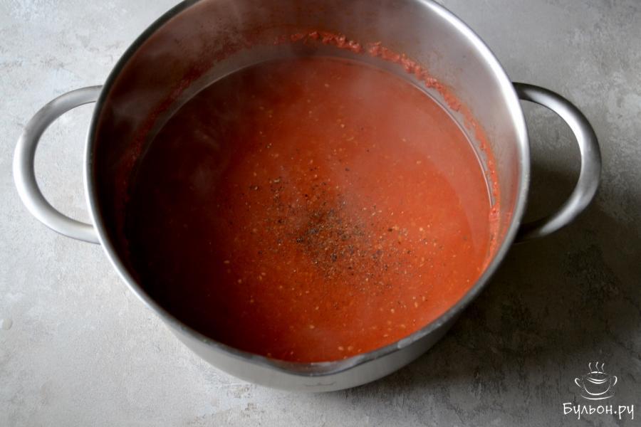 6. Прокипятите сок в течение 25-30 минут на огне ниже среднего, посолите и посыпьте черным молотым перцем или добавьте несколько горошин черного перца, сахар, влейте растительное масло.